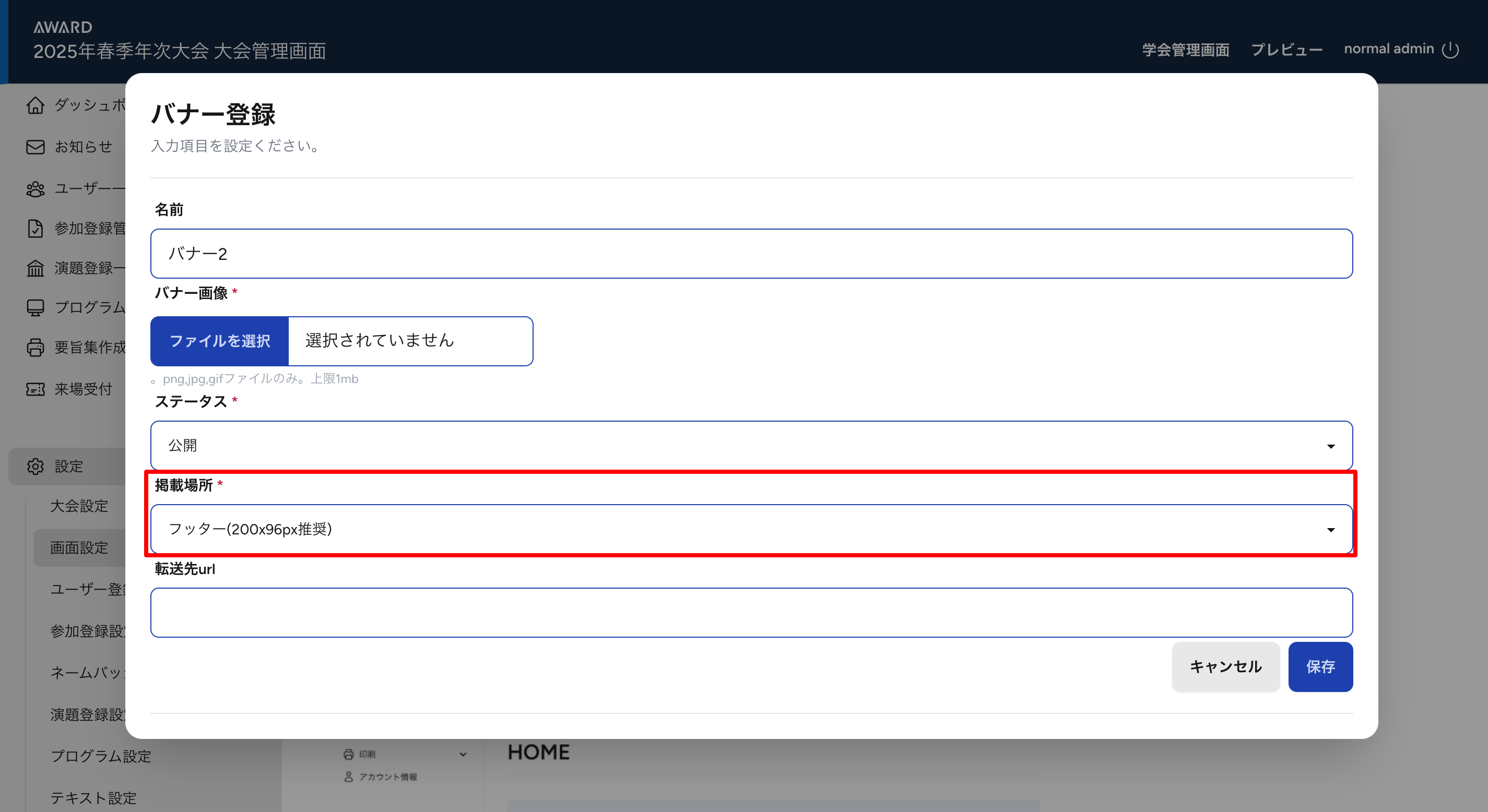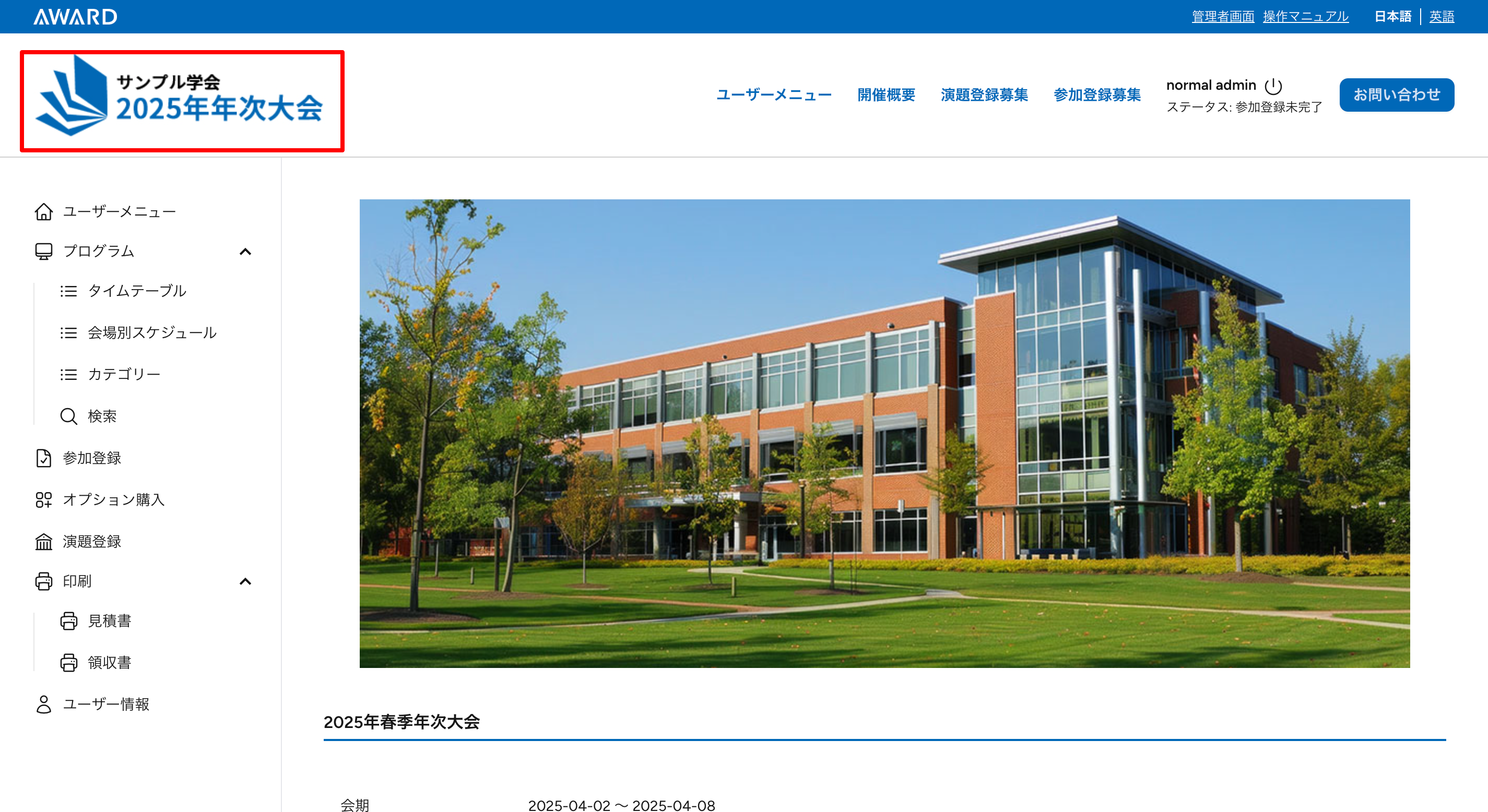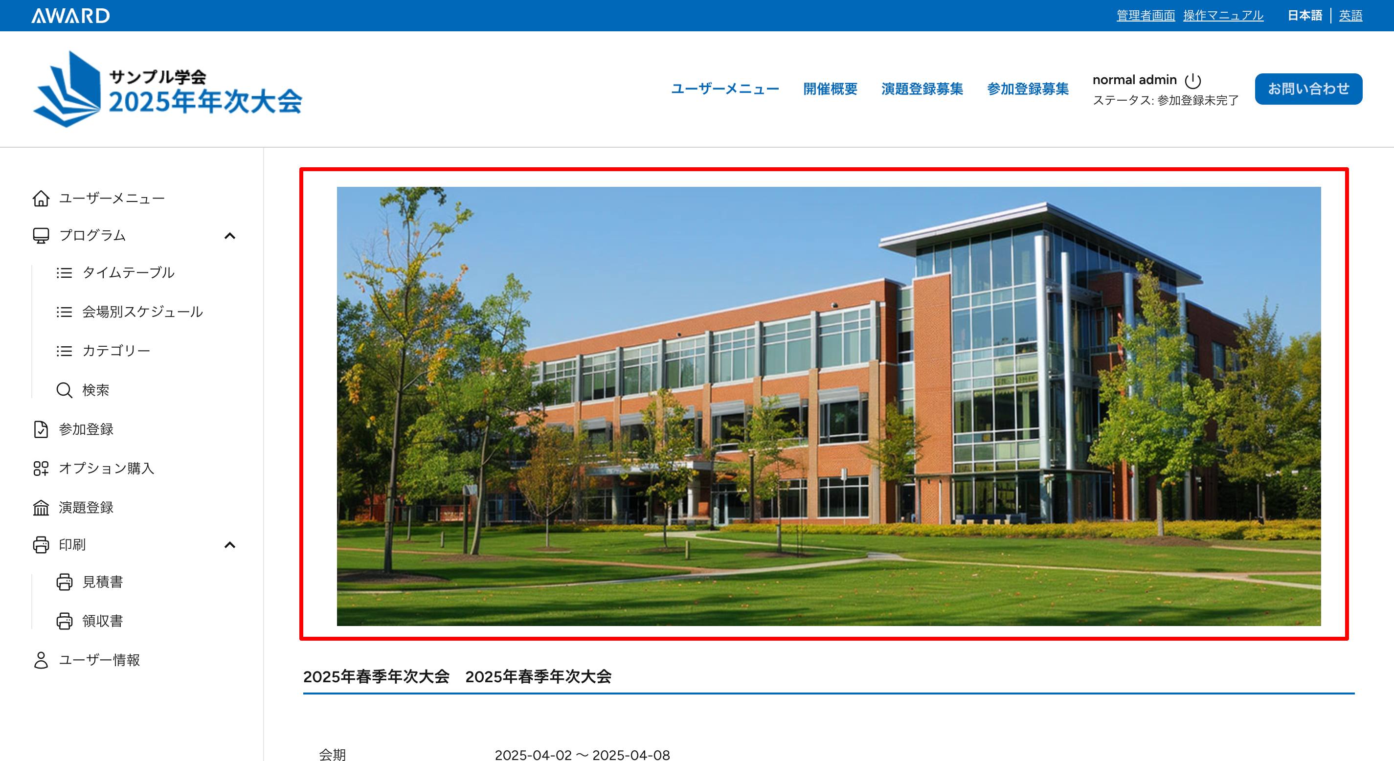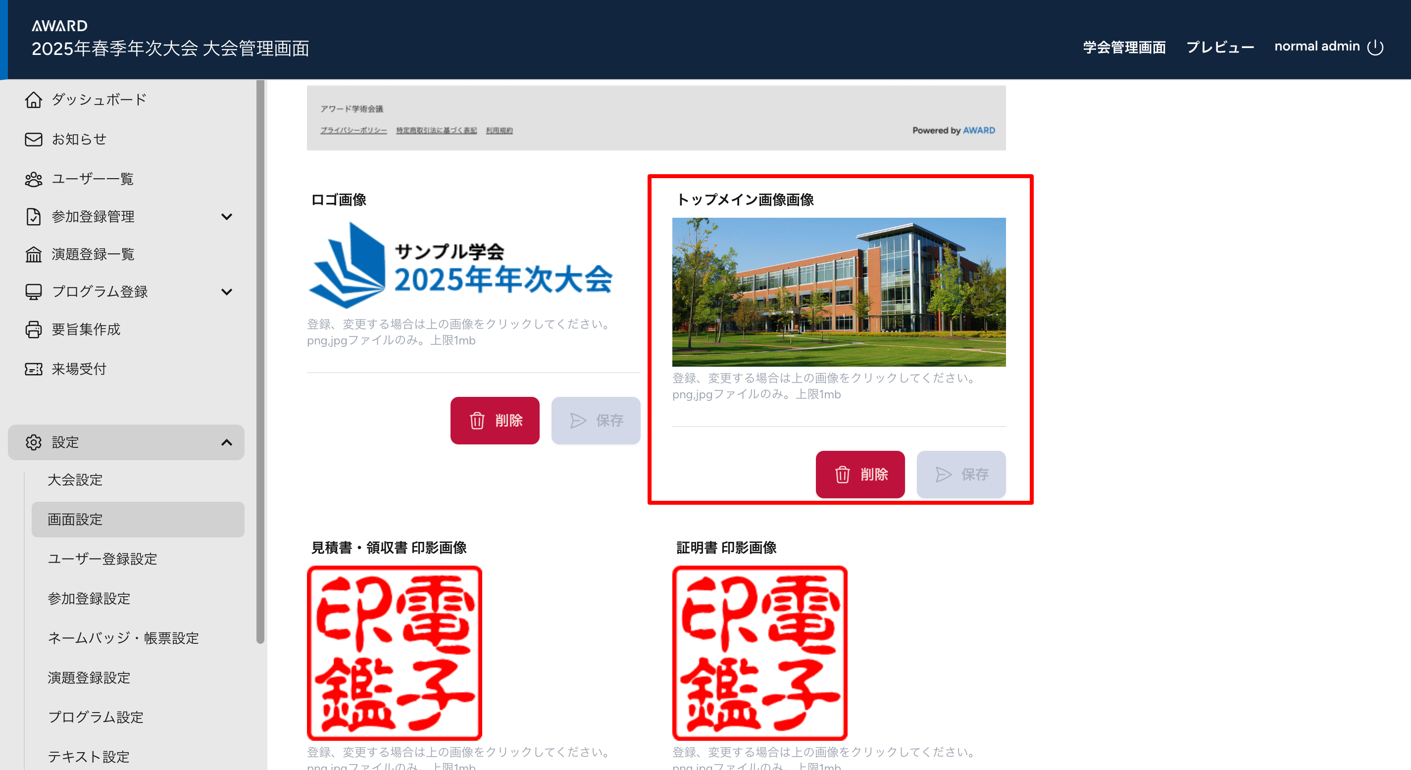 ※トップメインの画像とは、 URL 〇〇.award-con.com/congress/1/dashboardのトップのメインイメージを指します。
