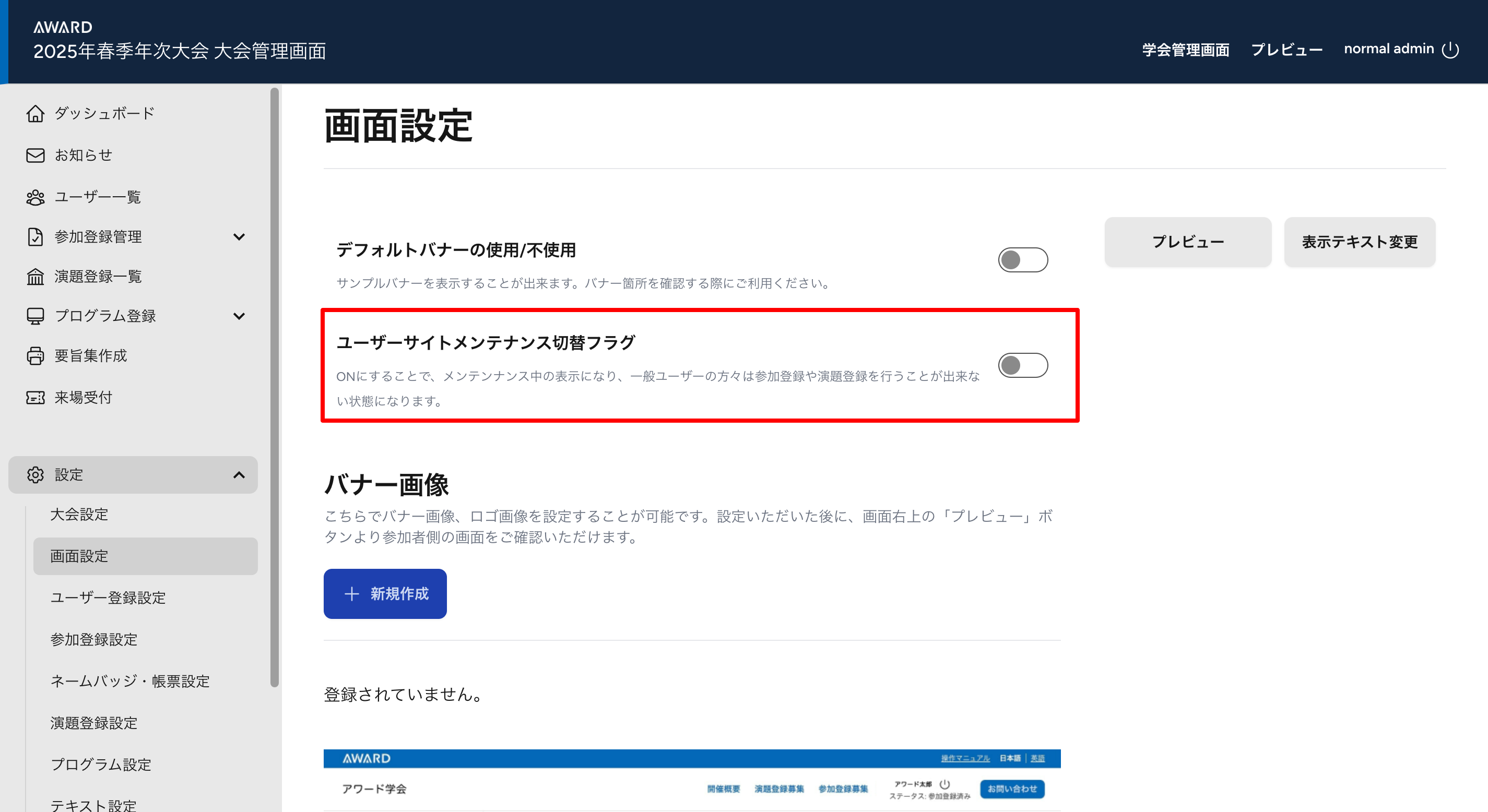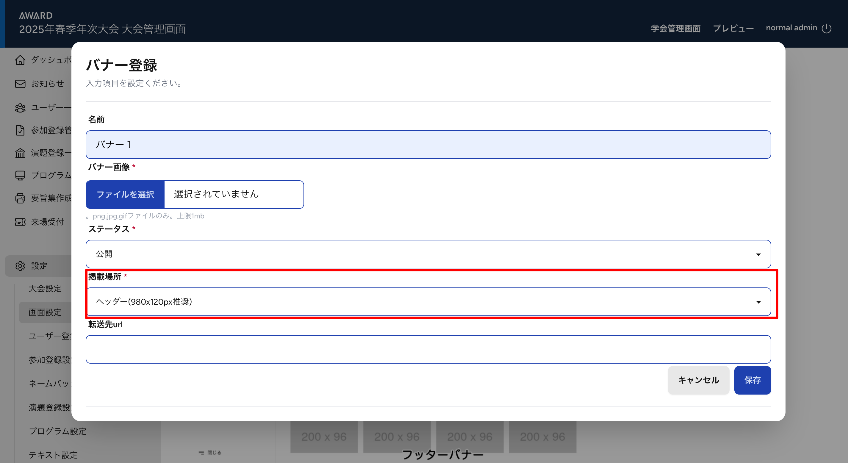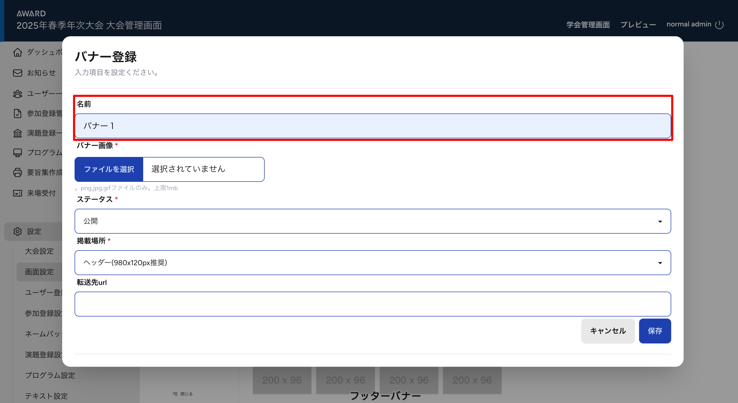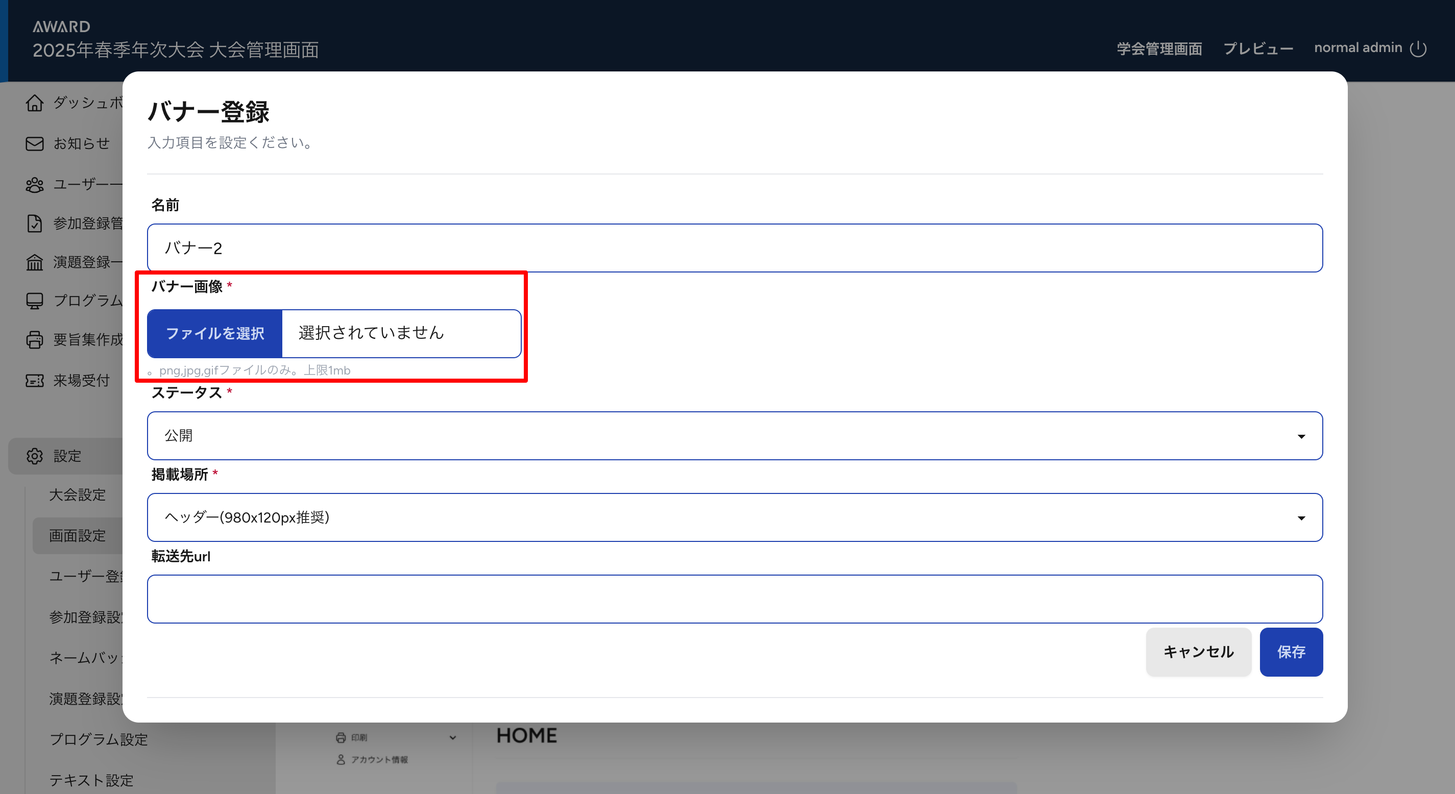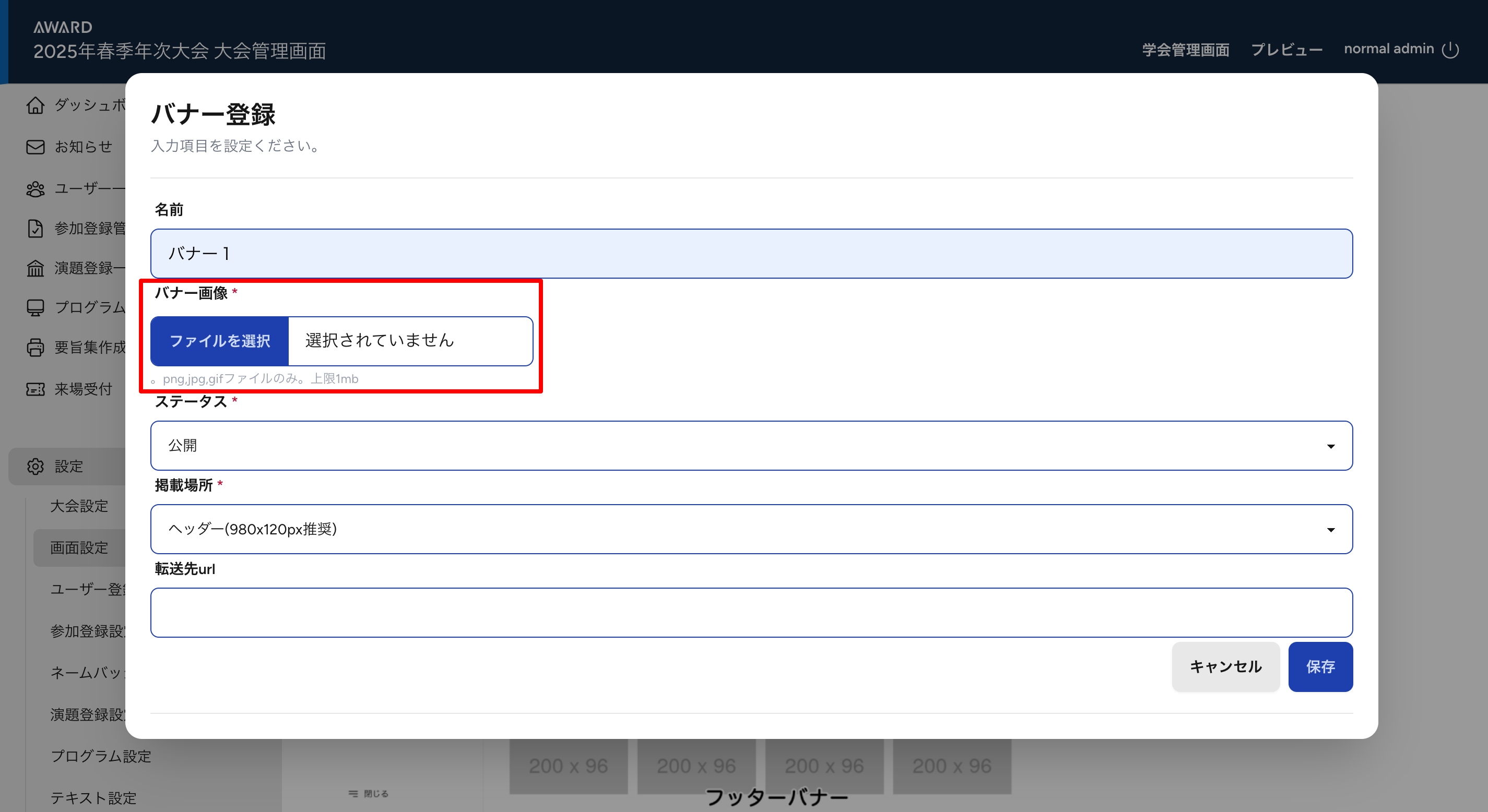 ※トップメインの画像とは、 URL 〇〇.award-con.com/congress/1/dashboardのトップのメインイメージを指します。