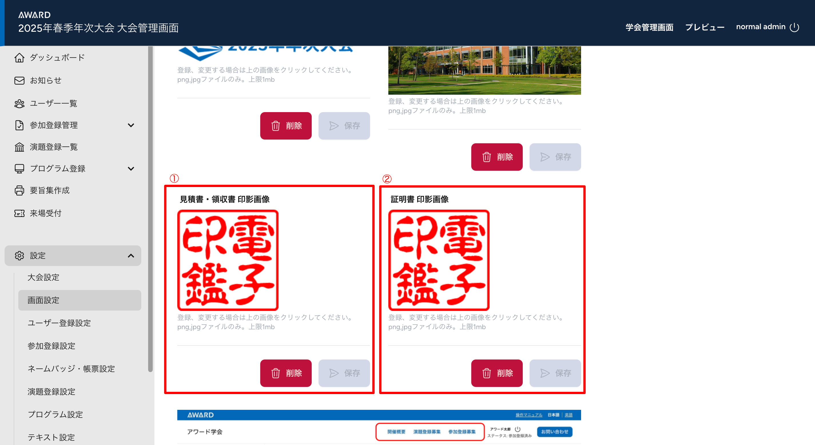 ①見積書・領収証の印影画像②証明書の印影画像の登録