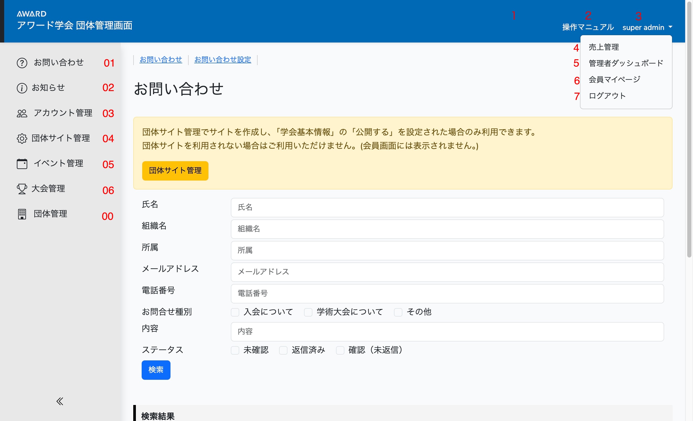 01 | 「団体サイト」からのお問合せ管理を行います。 | |