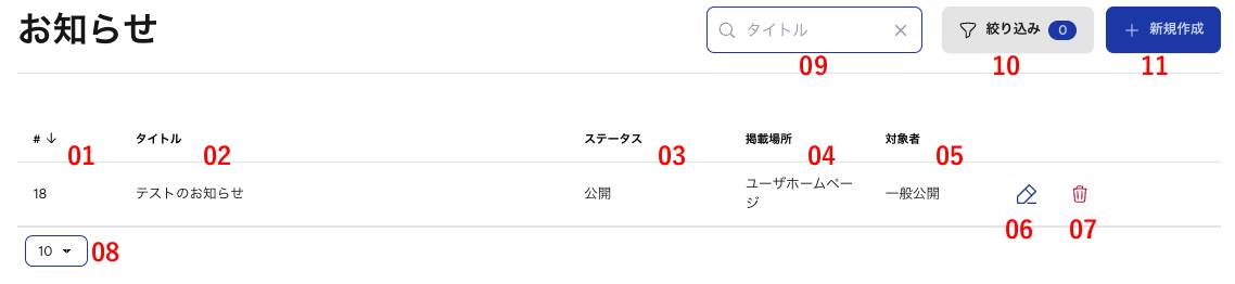 お知らせの再編集ができます。