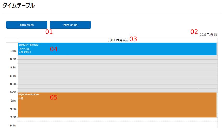 表示中のタイムテーブルの日程です。
