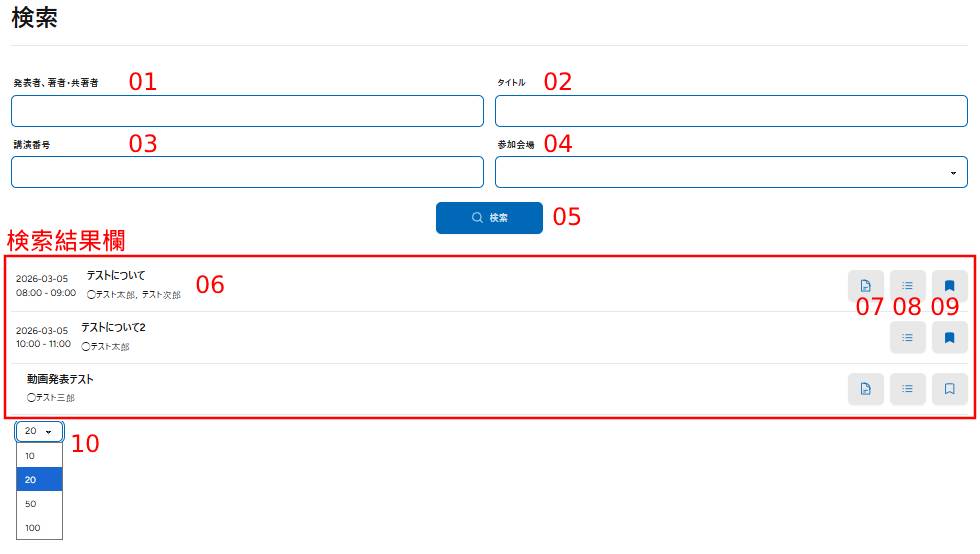発表日時、演題タイトル、筆頭著者・共著者が表示されています。