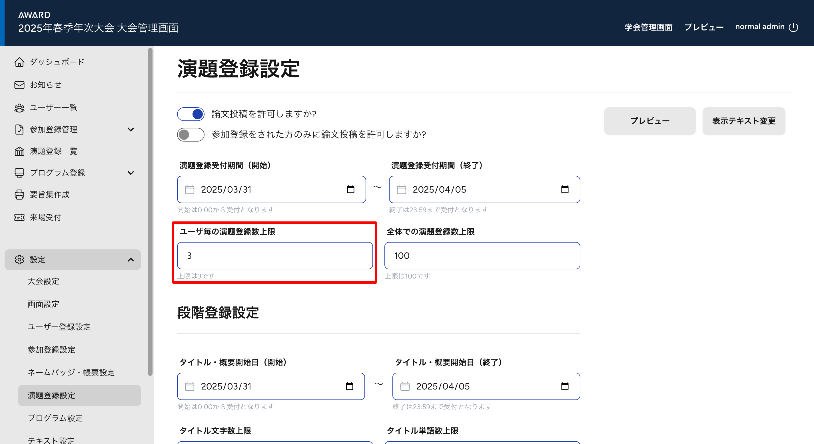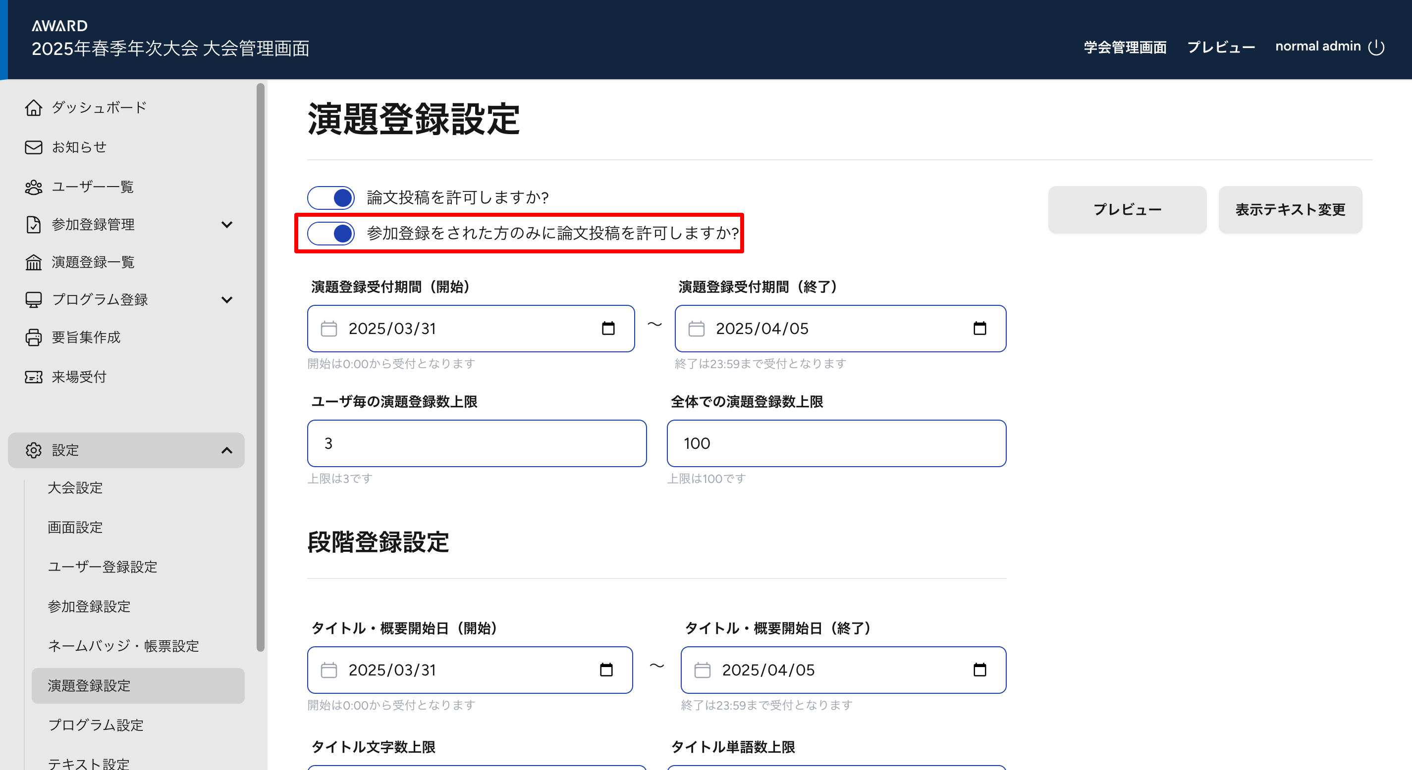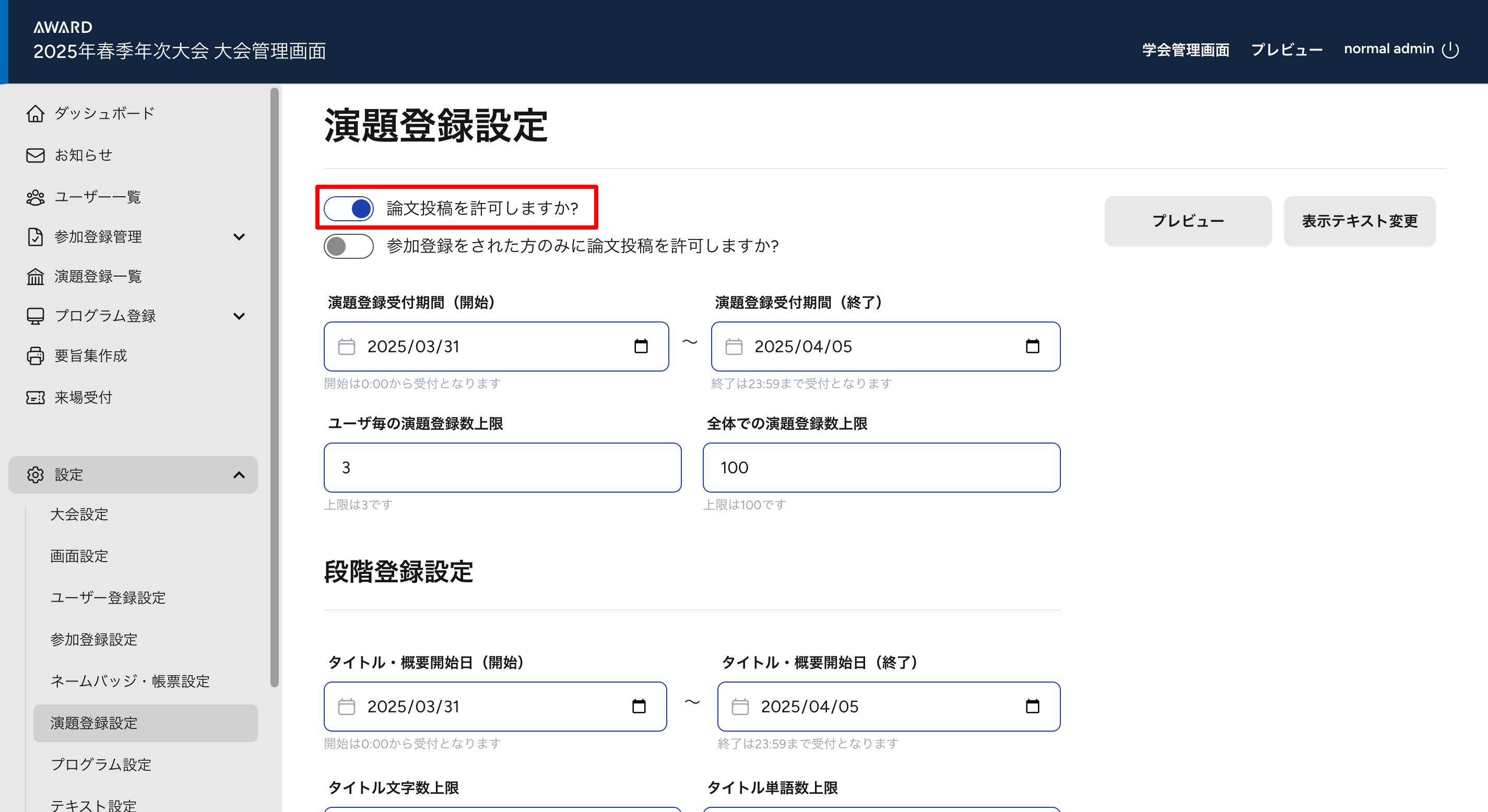 演題登録設定
