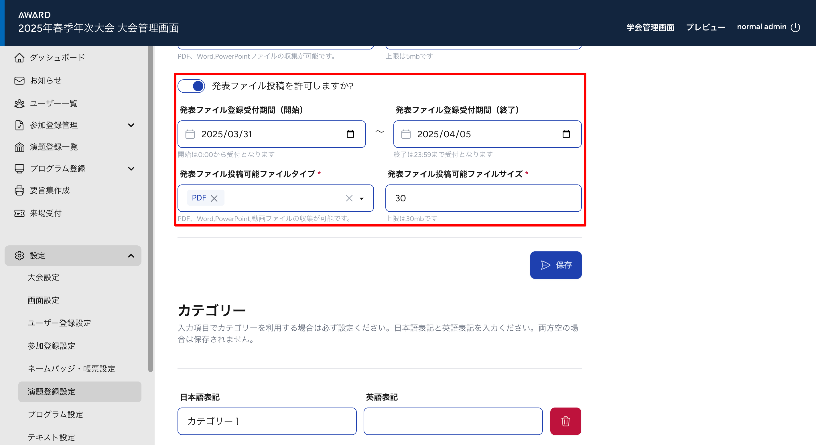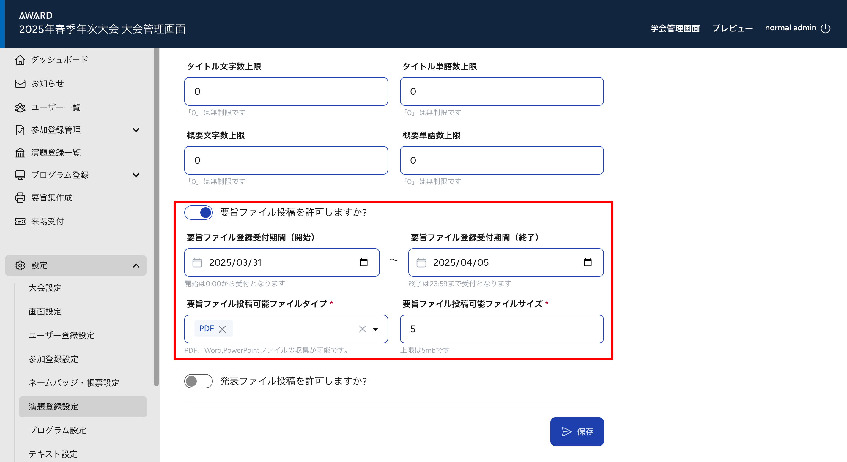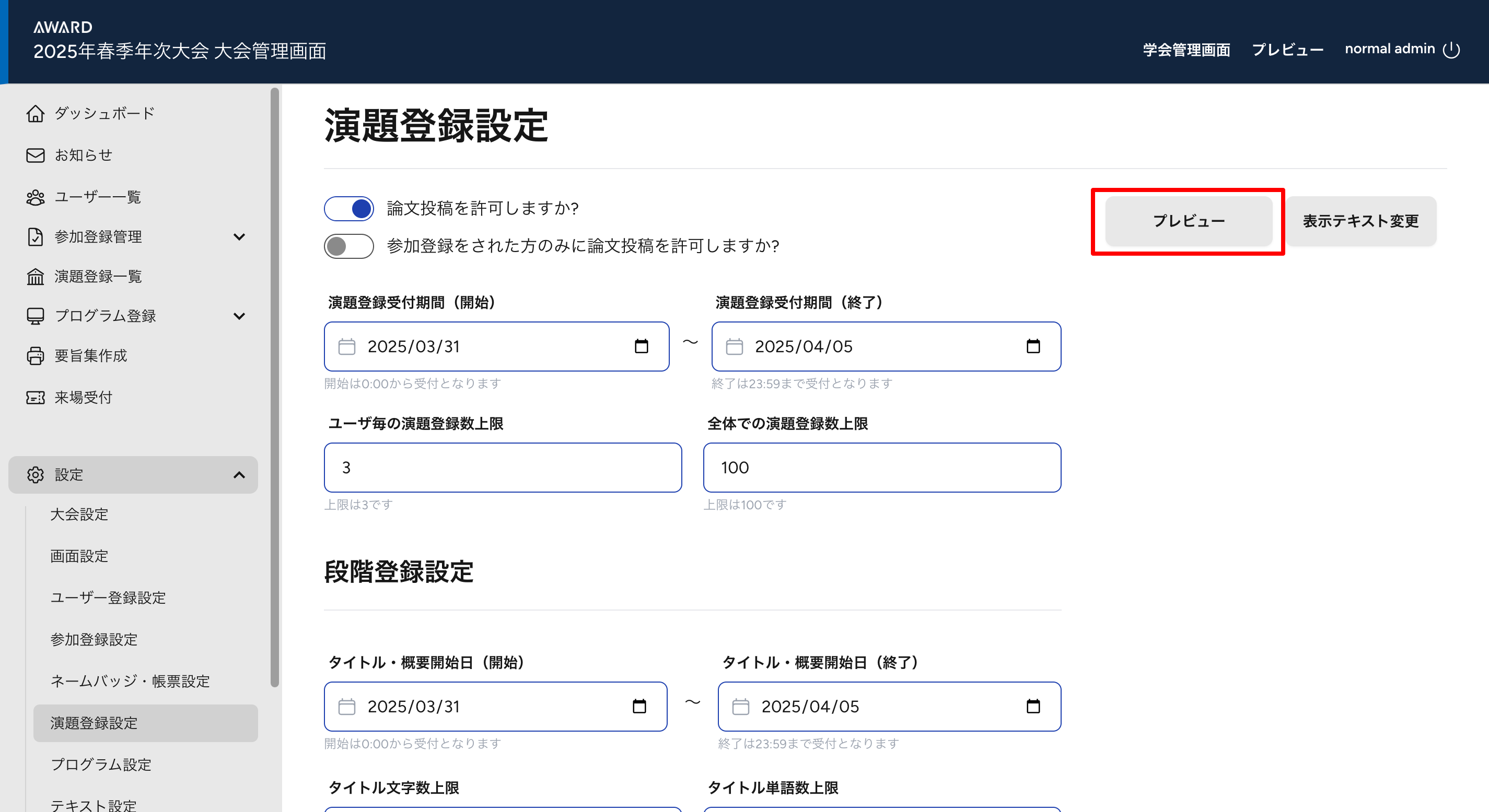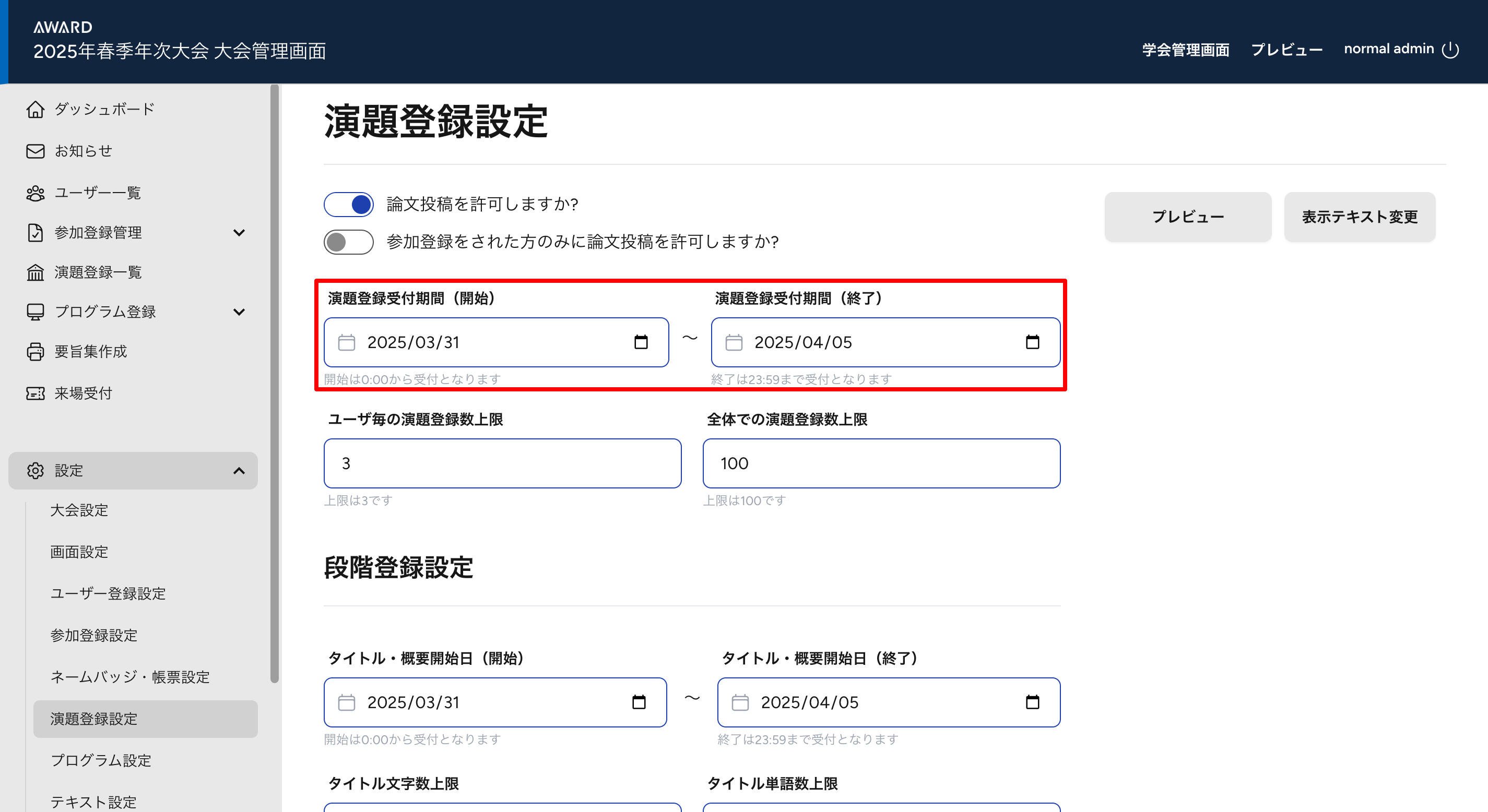 演題登録設定