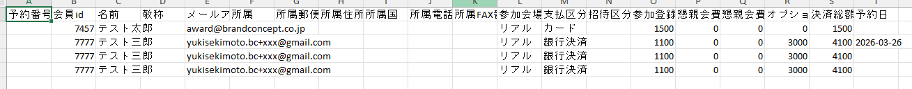 大会管理画面>参加登録管理>参加登録一覧よりエクセルデータの抽出が可能です。