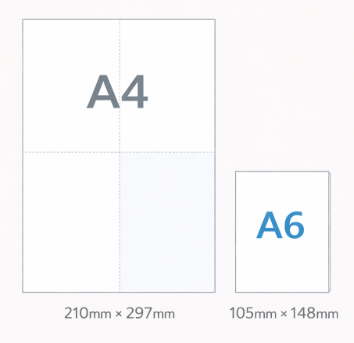 ※なおA4サイズにA6サイズを印刷しますと、左上に印刷されます。