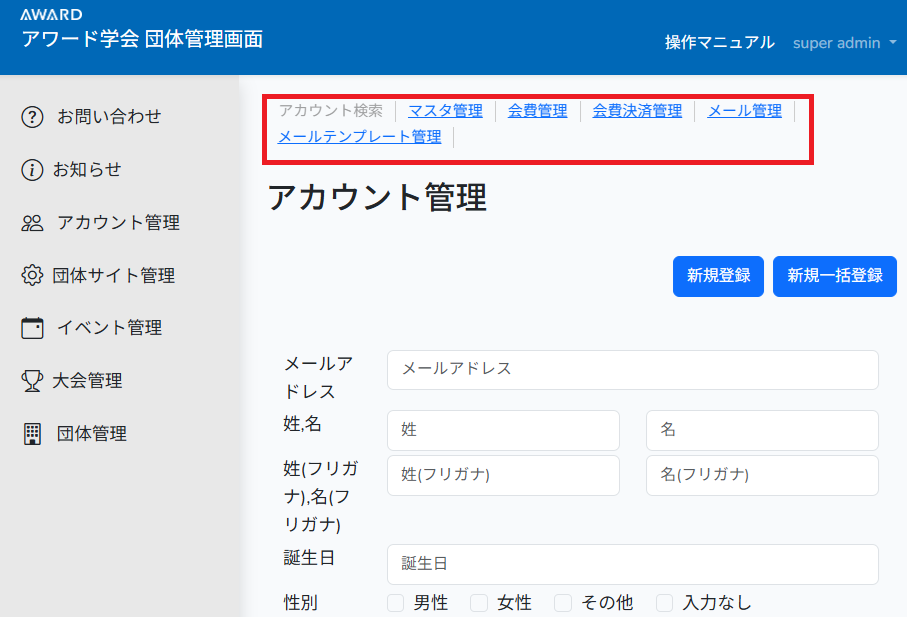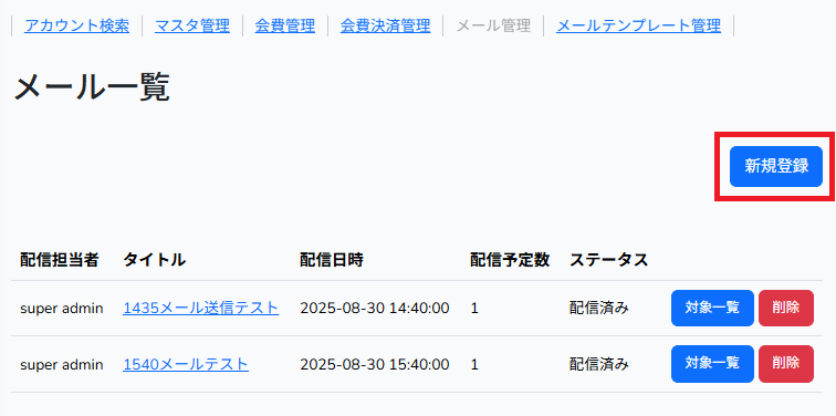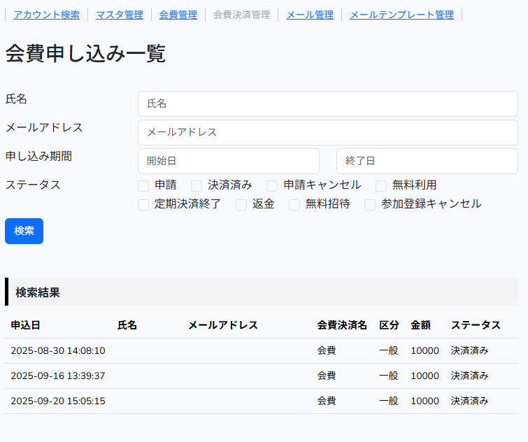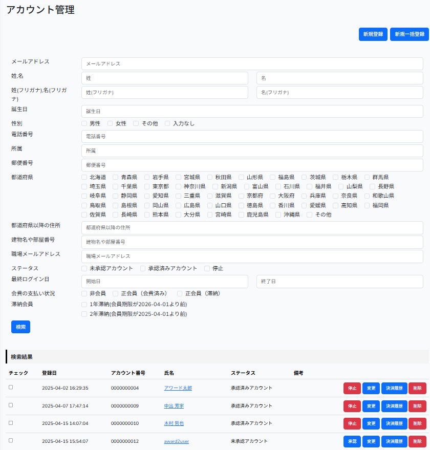 | 削除ボタン | 押下すると会員が削除されます。 |