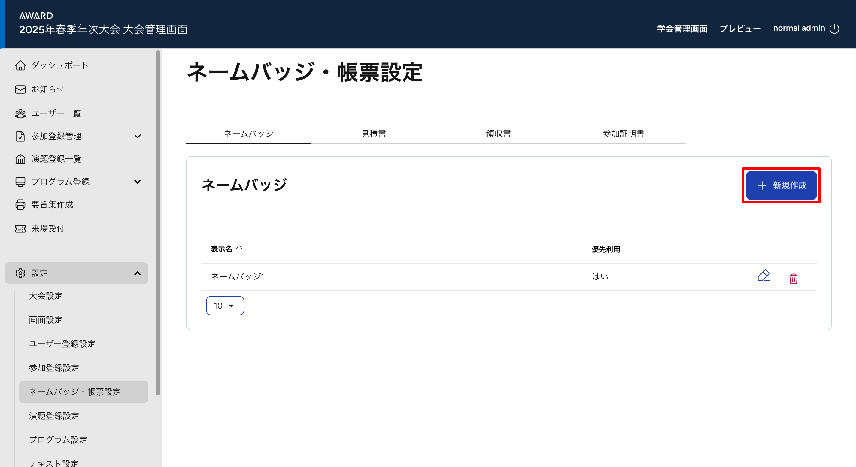 ネームバッジ設定